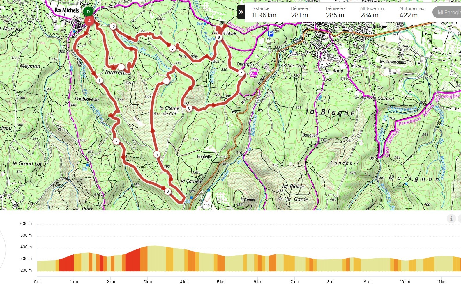 rando moyenne de 12kms en 3h(pour moi....), au départ des michels, et 281m de dénivelé, attention à bien suivre le GPS, la trace, car beaucoup de carrefours, alternance chemin, piste, trace non visible..et inconvénient ce jeudi, au moins 3 chasses au gros gibier, faire attention, être bien visible..