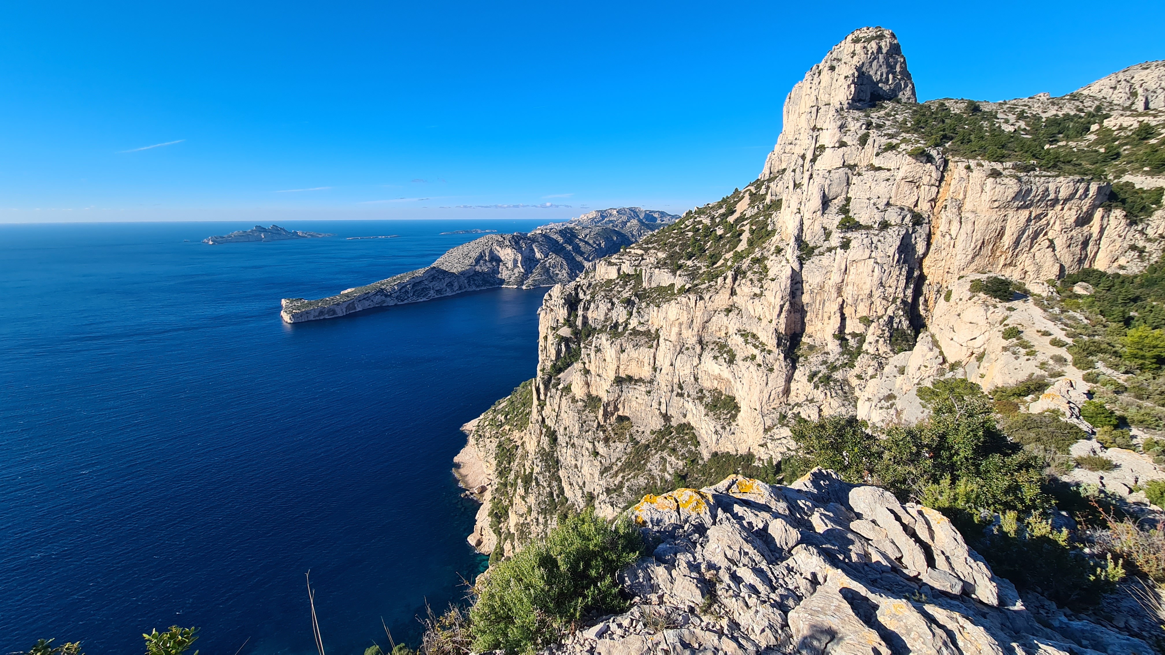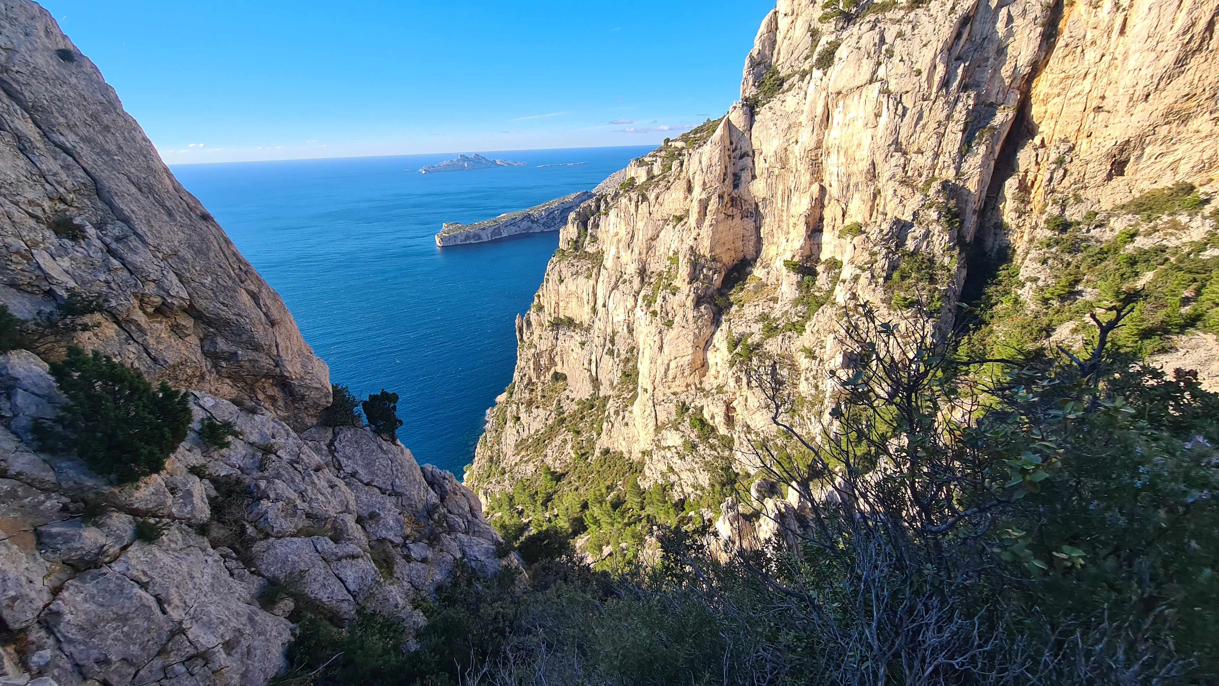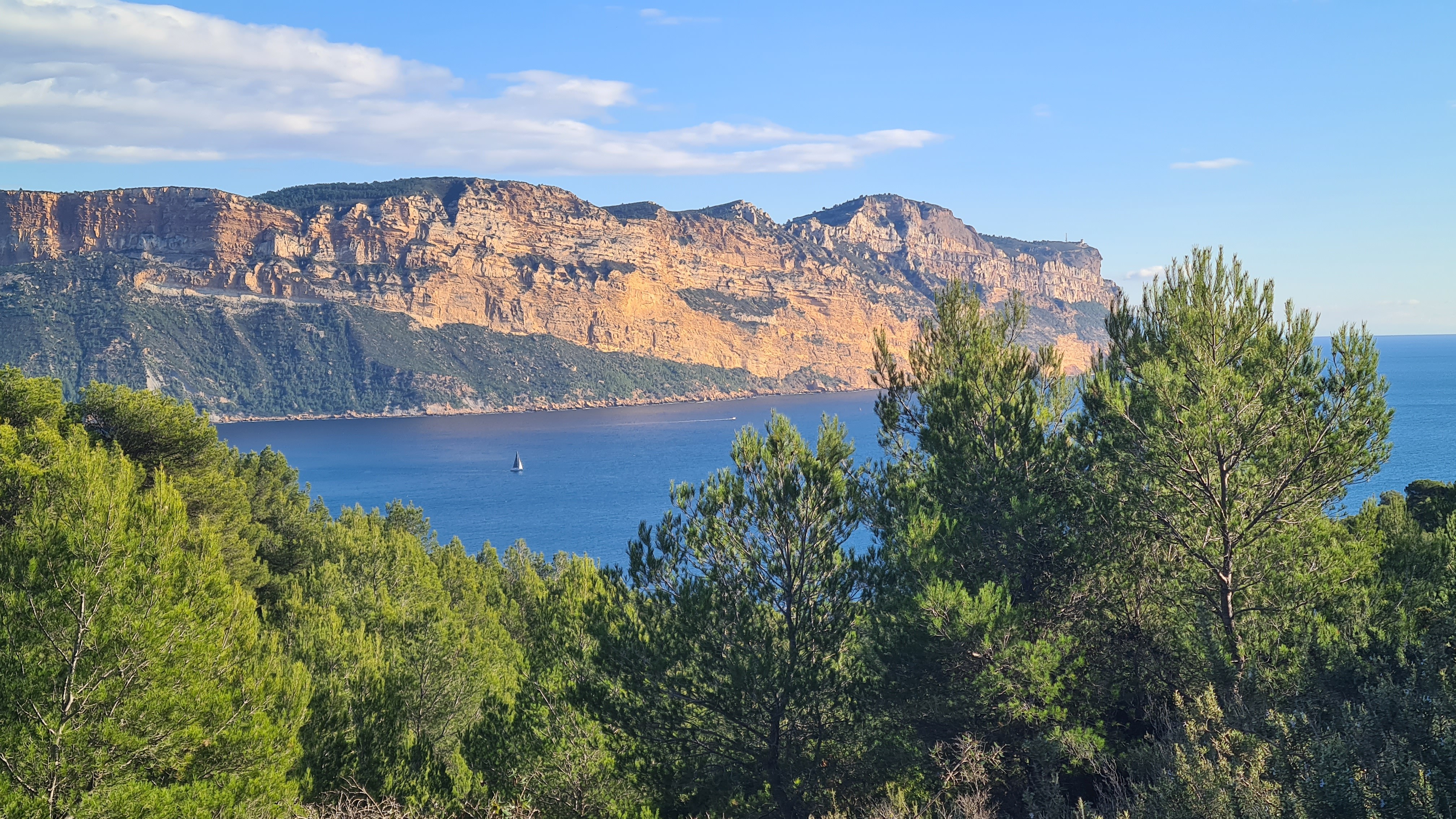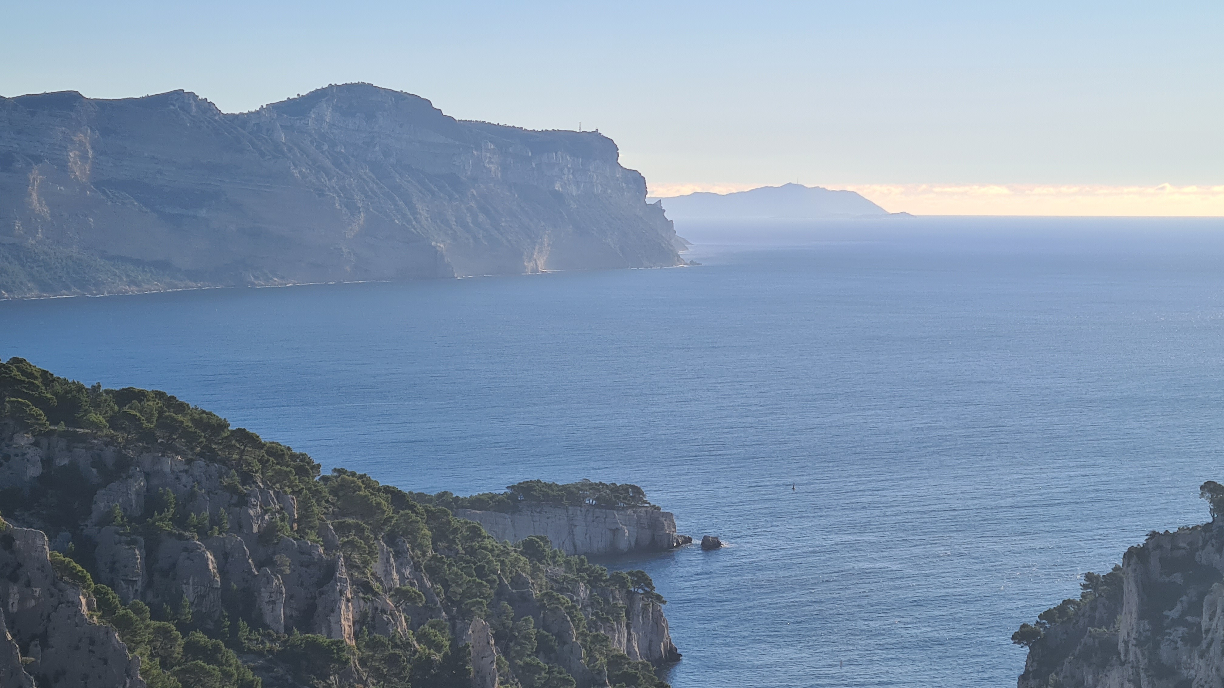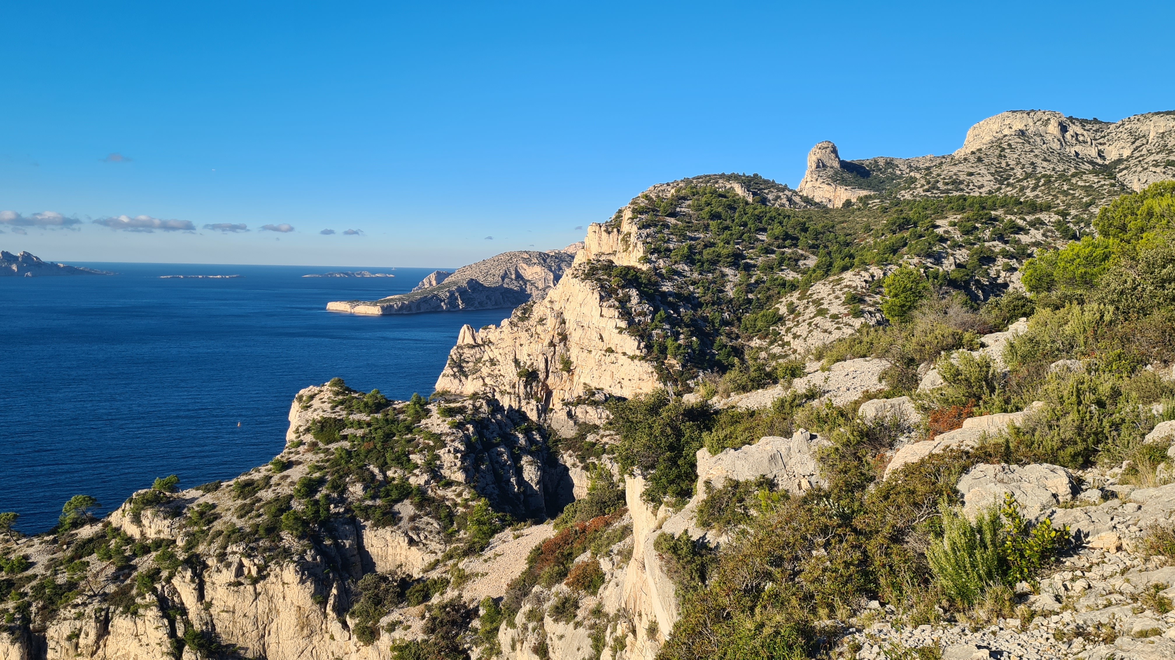 Depuis le parking, rejoindre par le petit sentier Port Miou longer les barrières mise à cause des travaux, rejoindre la calanque par le sentier conseillé, puis monter vers le col, puis un aller retour sur le bleu vers le belvédère, puis descendre dans le vallon par le sentier bien amélioré, partir à droite et se diriger après par le sentier bleu , le col de l’oule, un aller retour vers le belvédère( 2kms environ) descendre dans le virage en bas, le sentier part à droite vers le cap gros que nous allons suivre..sur 2kms environ, nous rejoignons le GR que nous allons descendre, le col des charbonniers, puis remonter vers les crêtes des falaises du Devenson, le gr redescend, passe 2 vallons pour rjoindre le col de l’oule, le vallon d’en vau, puis à gauche, et la montée vers le portalet, un peu plus loin nous avons pris le 1er sentier, (je conseille d’aller plus loin et de prendre la piste vers la droite) car ce sentier, en redescendant nous fait rejoindre, le sentier du GR, qu’il faut alors remonter..puis le retour comme à l aller..