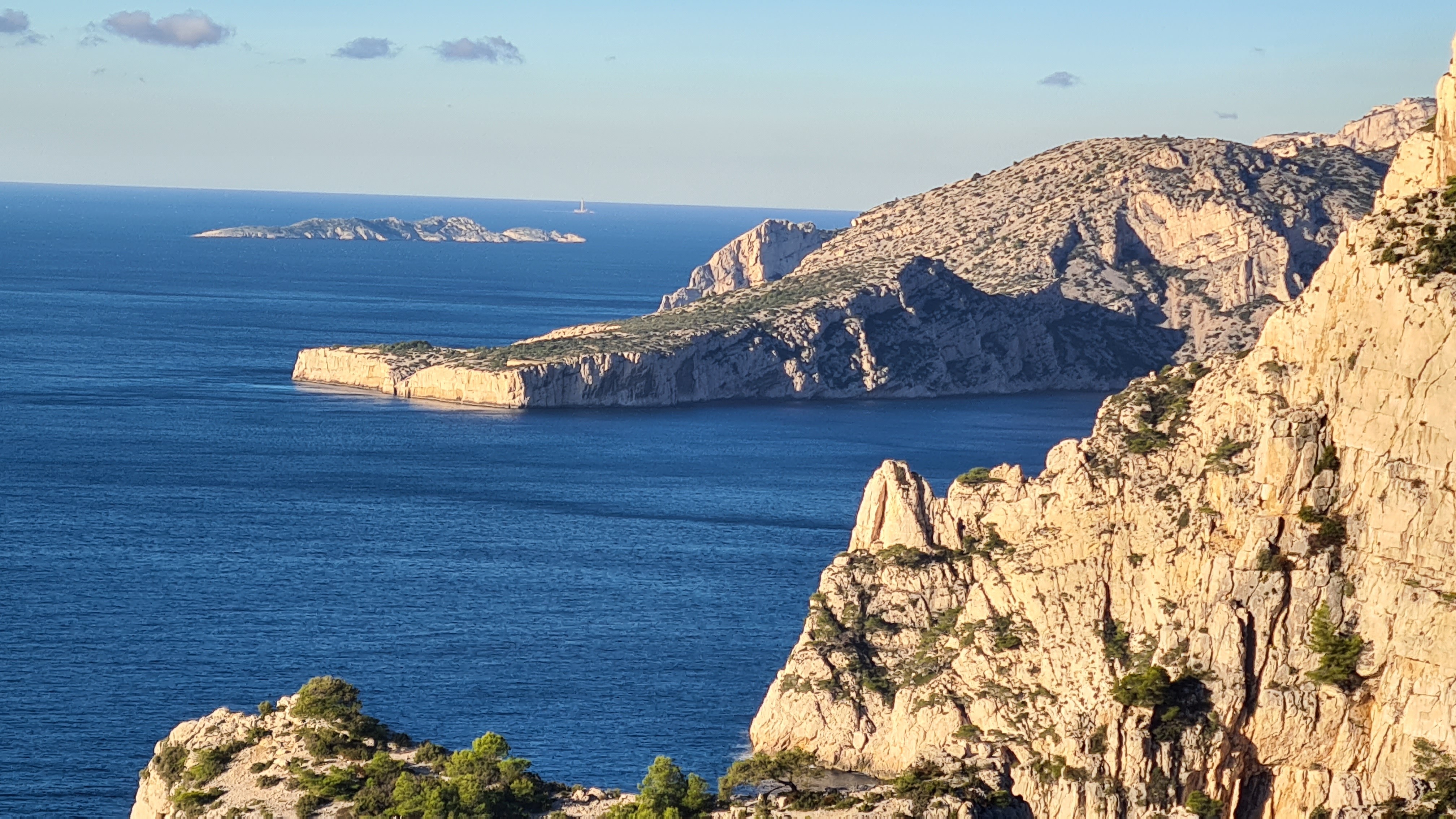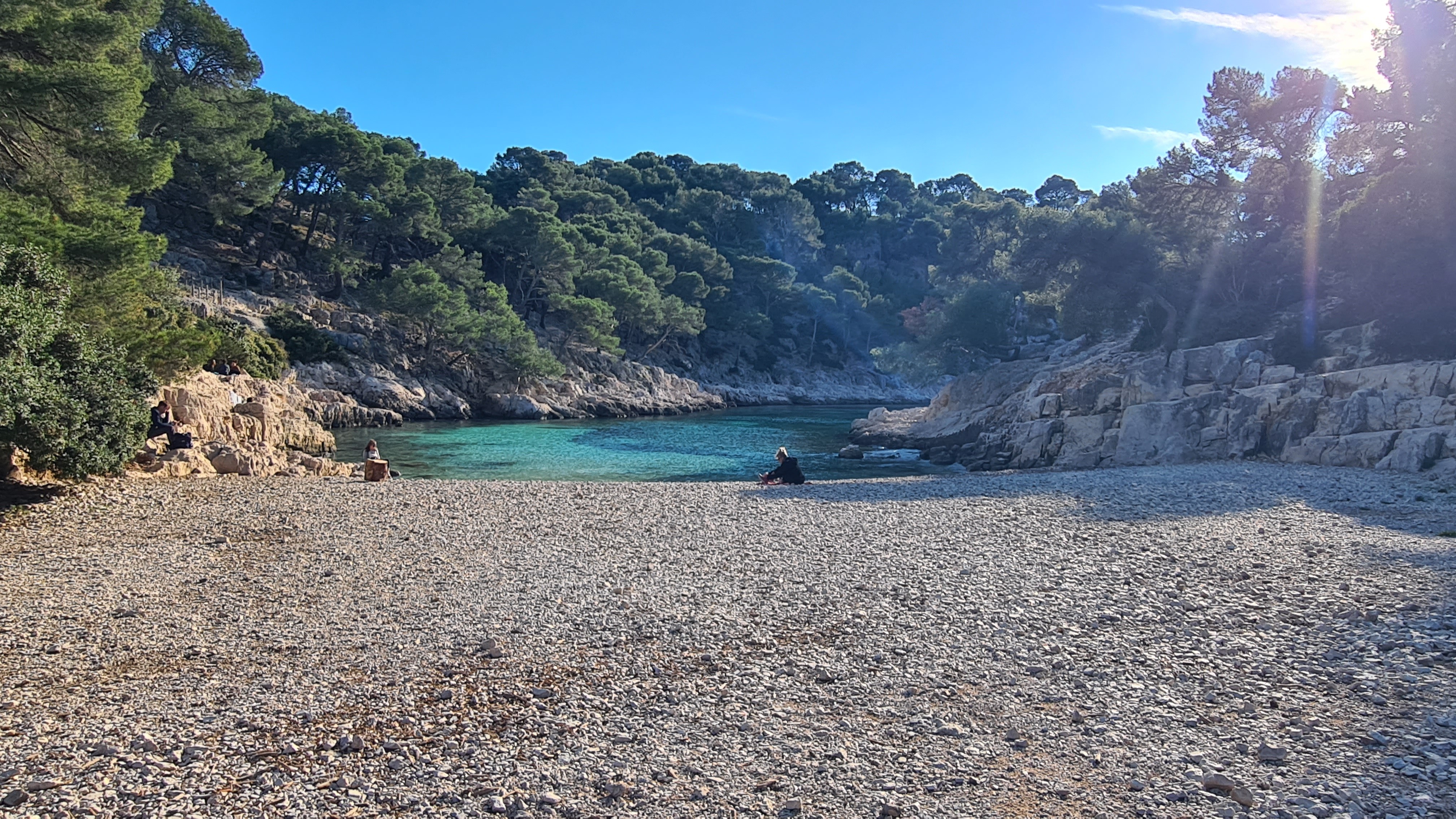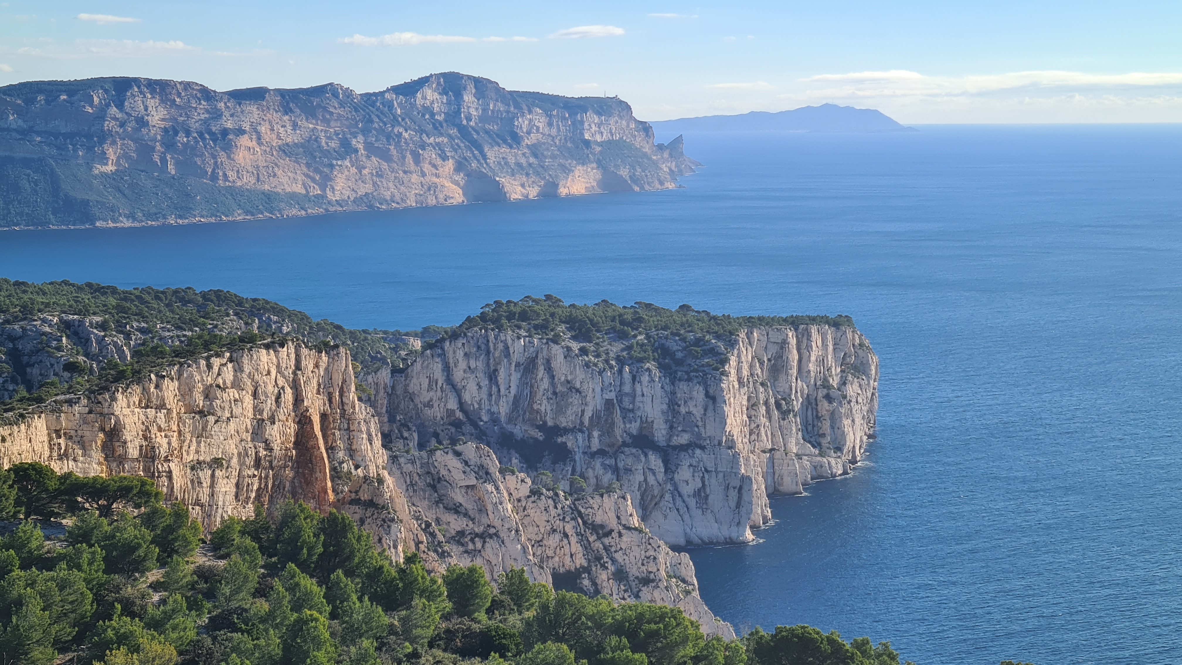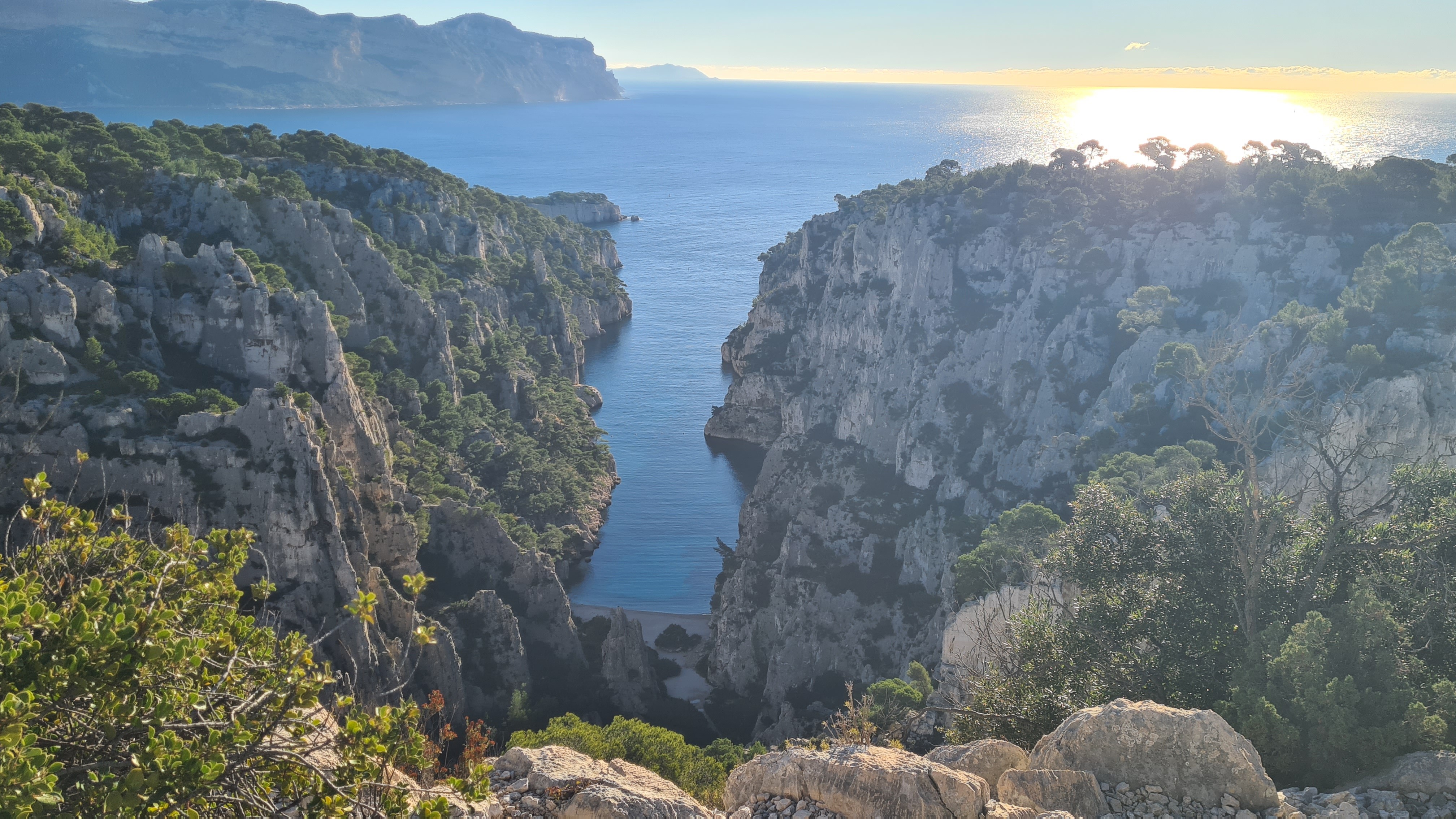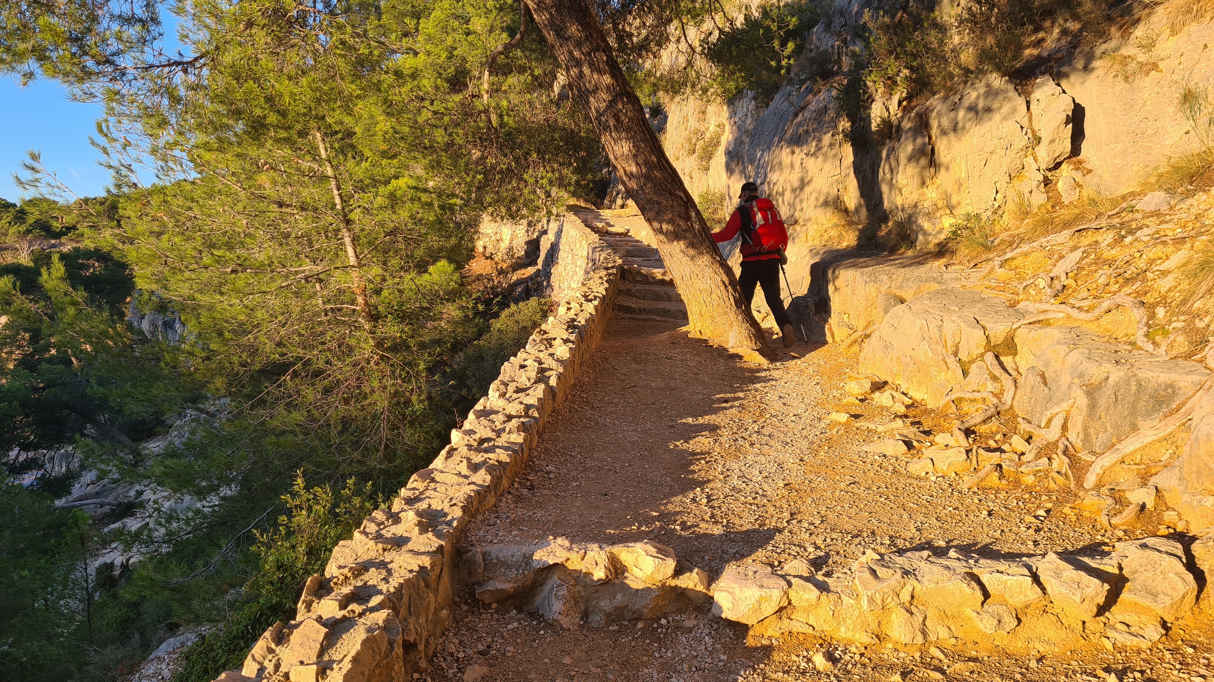 Depuis le parking, rejoindre par le petit sentier Port Miou longer les barrières mise à cause des travaux, rejoindre la calanque par le sentier conseillé, puis monter vers le col, puis un aller retour sur le bleu vers le belvédère, puis descendre dans le vallon par le sentier bien amélioré, partir à droite et se diriger après par le sentier bleu , le col de l’oule, un aller retour vers le belvédère( 2kms environ) descendre dans le virage en bas, le sentier part à droite vers le cap gros que nous allons suivre..sur 2kms environ, nous rejoignons le GR que nous allons descendre, le col des charbonniers, puis remonter vers les crêtes des falaises du Devenson, le gr redescend, passe 2 vallons pour rjoindre le col de l’oule, le vallon d’en vau, puis à gauche, et la montée vers le portalet, un peu plus loin nous avons pris le 1er sentier, (je conseille d’aller plus loin et de prendre la piste vers la droite) car ce sentier, en redescendant nous fait rejoindre, le sentier du GR, qu’il faut alors remonter..puis le retour comme à l aller..